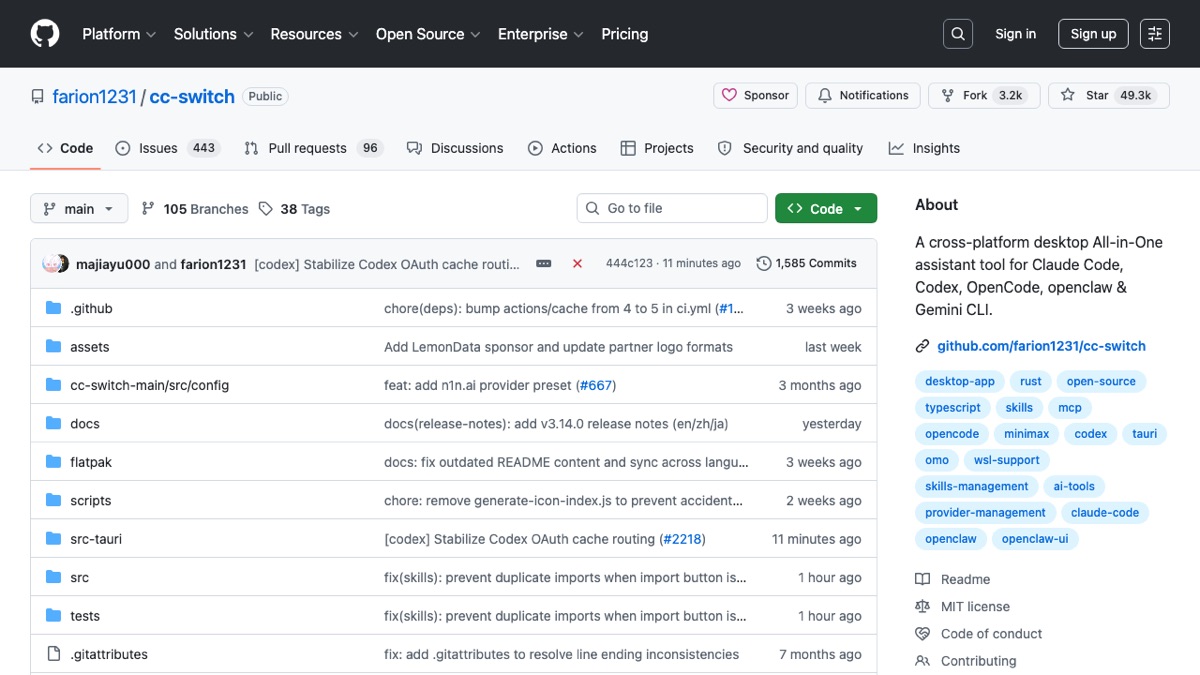 | cc-switch | Unified provider + MCP management desktop app | farion1231/cc-switch |