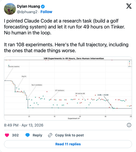 The most compelling signal that routines are ready for real workflows came before they even launched: a Claude Code agent already ran 108 machine learning experiments over 49 hours with no human in the loop, building a golf forecasting system. With cloud-hosted execution, that kind of autonomous workload is now a configuration file, not a requirement to keep your terminal open for two days.