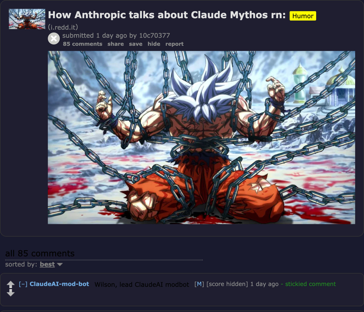 Meanwhile, r/ClaudeAI took a more irreverent approach — a meme post mocking Anthropic's press-release style landed at 2,100+ upvotes, suggesting a cohesive narrative forming that Anthropic is strong on research theater but inconsistent on product polish.