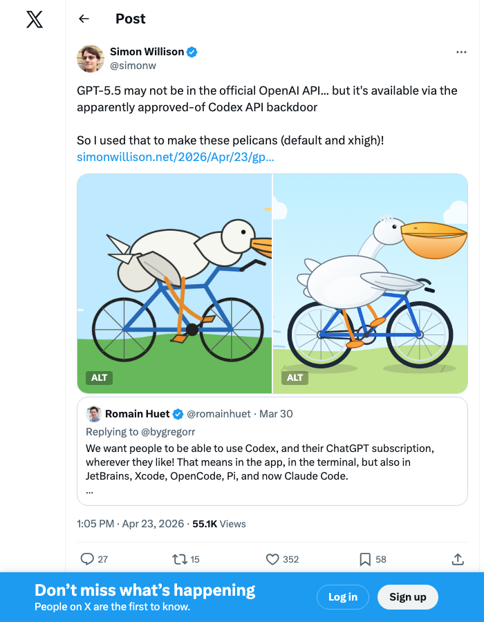 The confirmation came from Romain Huet, OpenAI's Head of Developer Experience, in a reply that Simon Willison flagged on April 25: