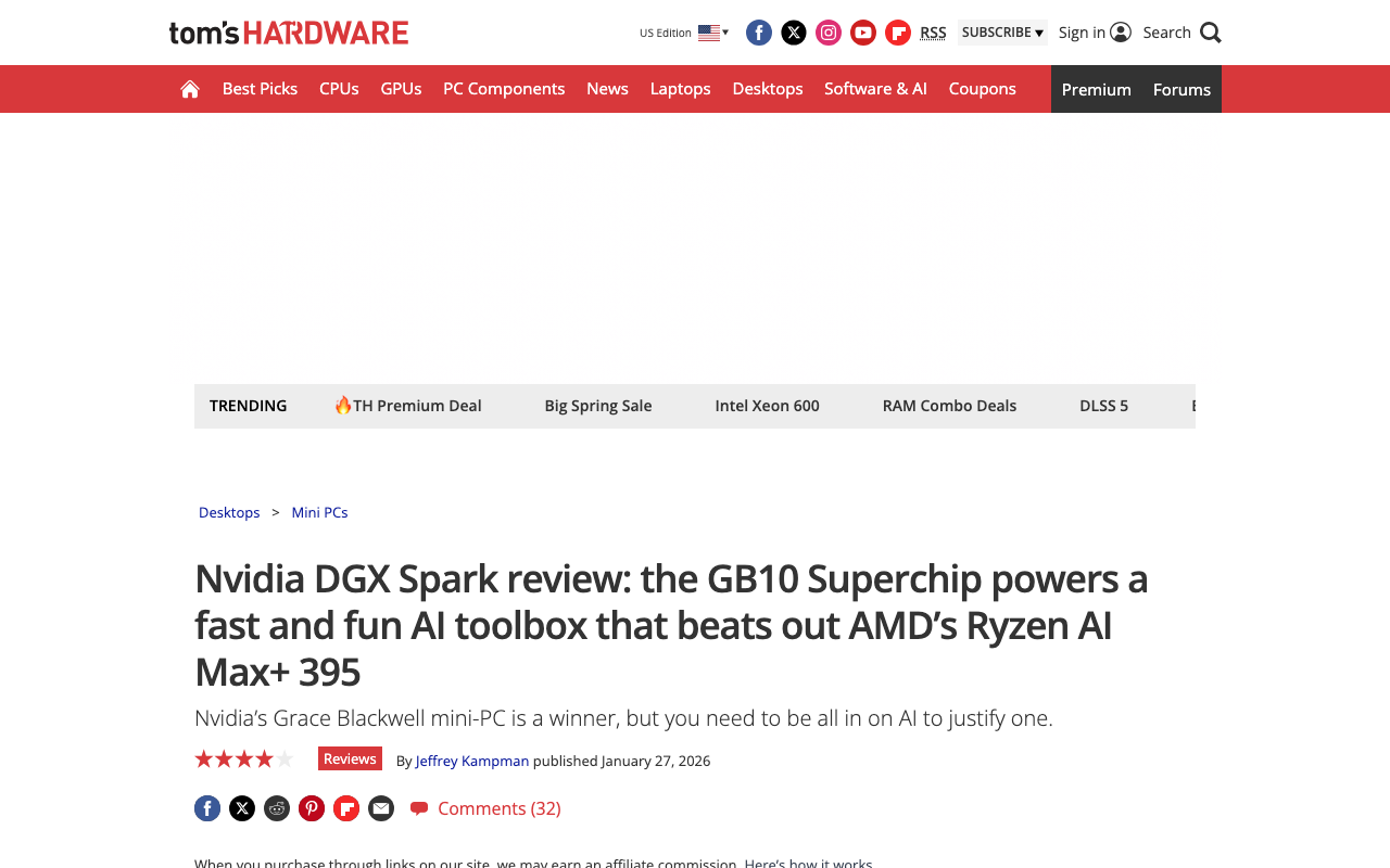 The real-world benchmarks tell a nuanced story. Tom's Hardware's review found that NVIDIA's CES 2026 software update delivered up to 2.5x performance improvements over launch through TensorRT-LLM optimizations and speculative decoding. With speculative decoding enabled, some models see a 2x speed-up in end-to-end inference throughput.